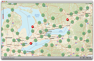 Cluster design can be fun and interesting. Different colors, shapes, and icons are useful for emphasizing clusters on the map. Clusters with a higher number count will stand out if given a larger size or a brighter color. This map of Orlando gives the potential visitor an idea of how many hotels are available in the area and where the more expensive hotels are located.